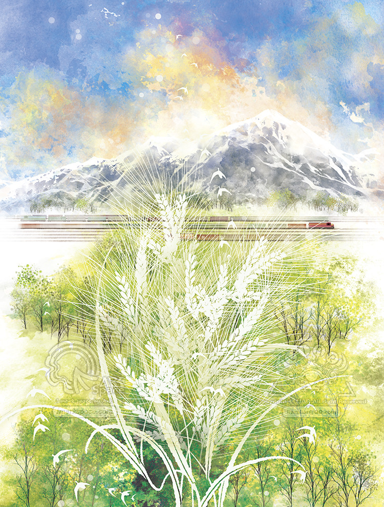 金灿灿的青稞粒,真的有翅膀啊,它们近在眼前,向着远方飞去……